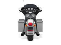 A stylishly stripped-down dresser, the Street Glide features lowered rear suspension, a smoked mini-wind deflector, and Tri-line LED lighting at the bottom of the rear fender for a low, lean profile. A traditional bat wing fairing holds a 40-watt Advanced Audio System by Harman/Kardon. A stretched, chrome fuel tank console and Streamliner footboards, brake pedal and passenger pegs finish the custom treatment. Newly restyled Black Slotted Disc cast aluminum wheels are exclusive to the Street Glide. A new low-mount license bracket locates the plate below the tail lamp, with new LED illumination.